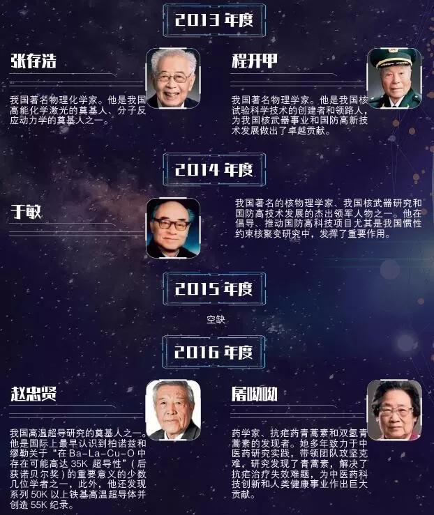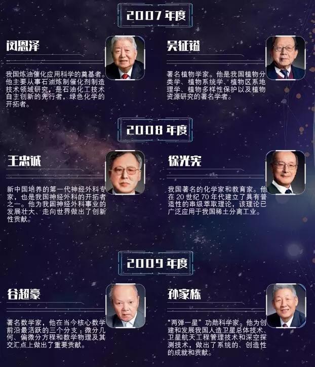 国家科学技术奖是为了奖励对科学技术进步做出突出贡献的公民、组织。其中,国家最高科学技术奖是中国科技界的最高荣誉,每年授予人数不超过2人。据《中国经济周刊》记者梳理,自设立至今,共有33位科学家获此殊荣,这33位国内顶尖的科学家分别为我国的气象、国防军工、医药、化学、基因工程、人居环境等关乎国计民生的事业做出过突出贡献。