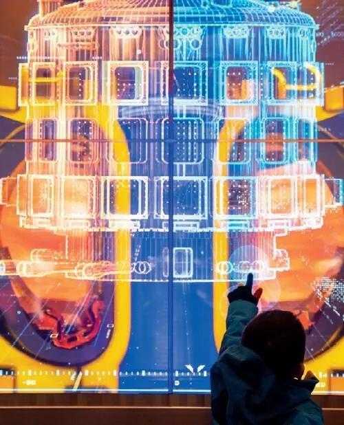 2019年11月22日,一名小朋友在“伟大的变革——庆祝改革开放40周年大型展览”上观看国际热核聚变实验堆模型。