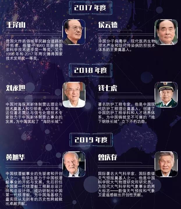 2020年1月10日,2019年度国家科学技术奖励大会在人民大会堂举行,中国工程院院士、著名核潜艇专家黄旭华和中国科学院院士、著名大气科学家曾庆存共同荣获国家最高科学技术奖。